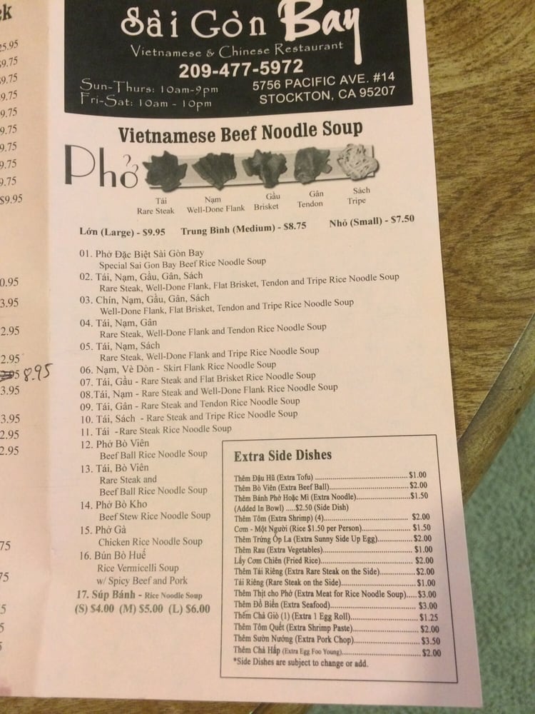 Pho Saigon Bay is a Chinese-Vietnamese restaurant located in Stockton, CA. They offer a variety of noodle dishes with vegan options and limited vegetarian choices. The restaurant provides takeout, delivery, and reservation services, making it convenient for customers. With wheelchair accessibility, beer and wine options, and a casual dining atmosphere, Pho Saigon Bay is a great spot for groups, families, and solo diners alike. The menu includes happy hour specials, outdoor seating, and catering services. The restaurant also offers amenities such as Wi-Fi, bike parking, and drive-thru options. Overall, Pho Saigon Bay provides a diverse range of flavors and dining experiences in a welcoming environment.